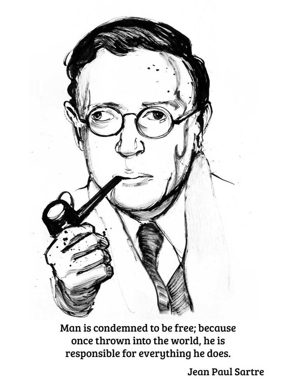 Jean Paul Sartre Poster Print Existentialist Philosopher And Etsy