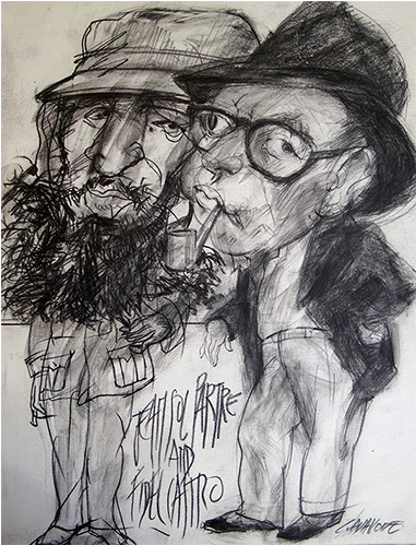 Fidel Castro Et Jean Paul Sartre Sketch Full Size Png Download Seekpng